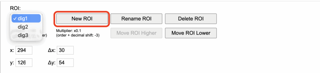 V této sekci nastavujeme okénka pro čtení číselných hodnot. Ve výchozím nastavení jsou k dispozici pouze tři políčka. Pomocí tlačítka New ROI postupně přidejte další tři a pojmenujte je jako dig4 – dig6.