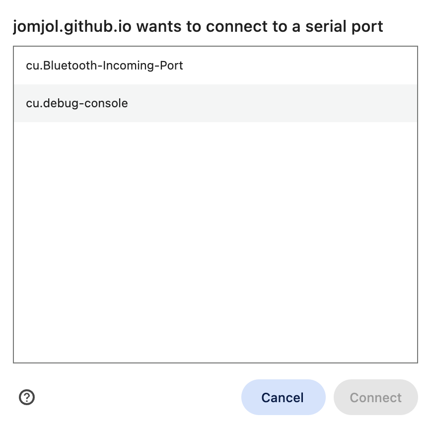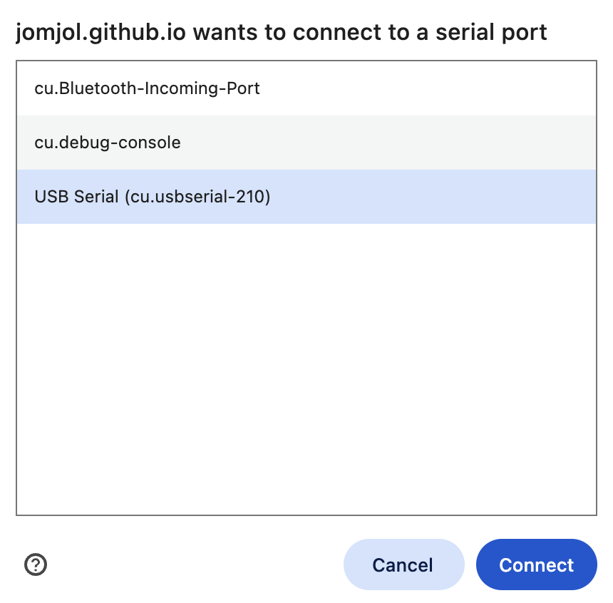 Znovu klikněte na tlačítko „CONNECT“ – nyní by se mělo vaše zařízení zobrazit v seznamu dostupných portů a být připraveno k nahrání firmware.