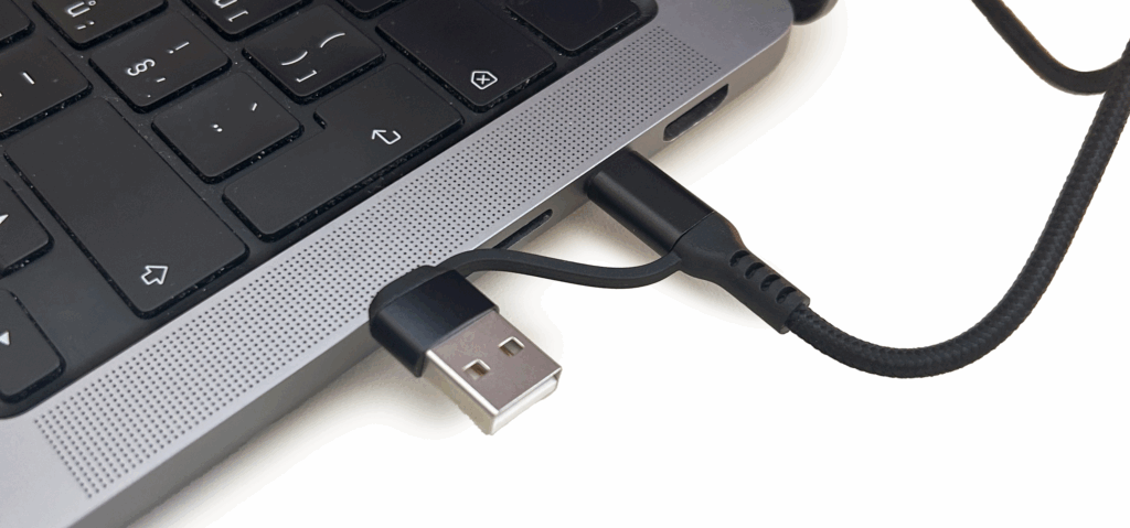 - USB-C kabel s redukcí na USB-A pro větší kompatibilitu s různými zařízeními.