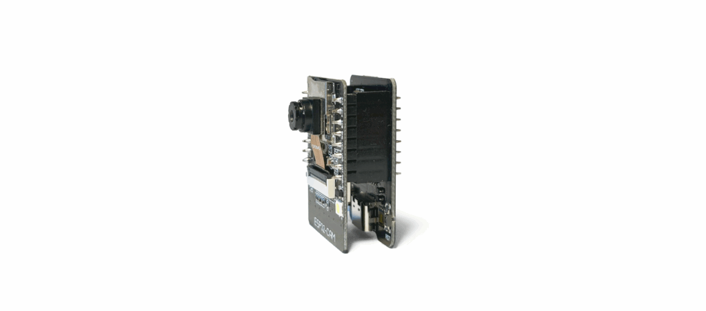 - Vpravo je umístěna vývojová deska ESP32-CAM-MB, přes kterou budeme zařízení napájet pomocí USB kabelu.