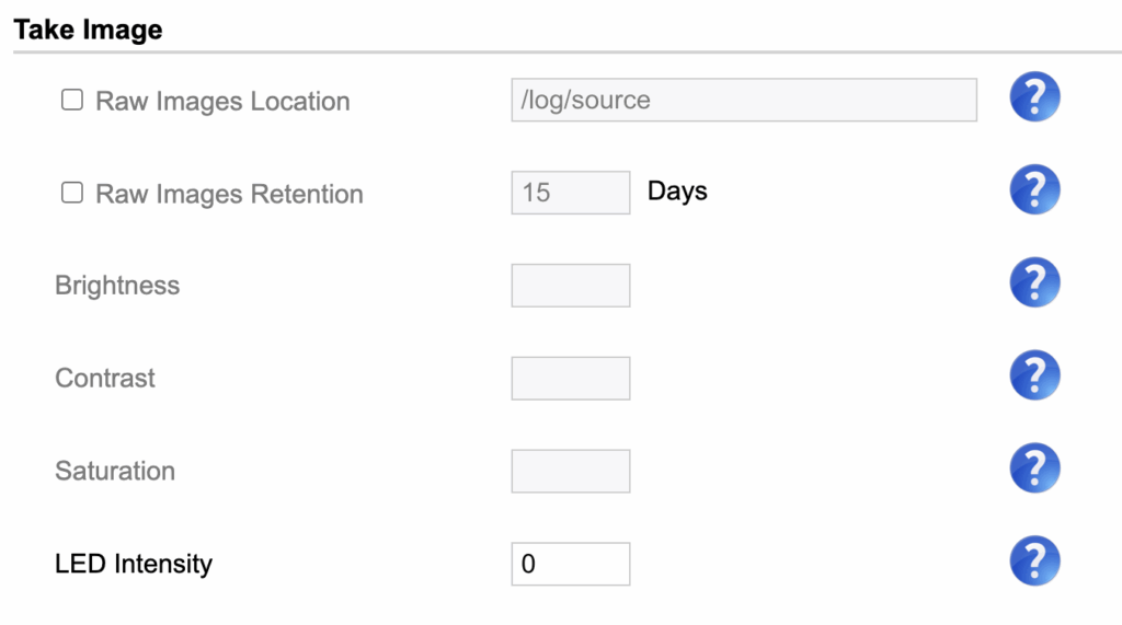 - Zde nastavíme Take image → LED Intensity = 0 (provádíme to především kvůli workshopu, abychom předešli odleskům z telefonů).