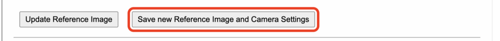 Poté uložte nastavení pomocí tlačítka Save new Reference Image and Camera Setting. Nepodceňujte prosím tento krok — na jeho přesnosti budou záviset všechny následující fáze konfigurace.