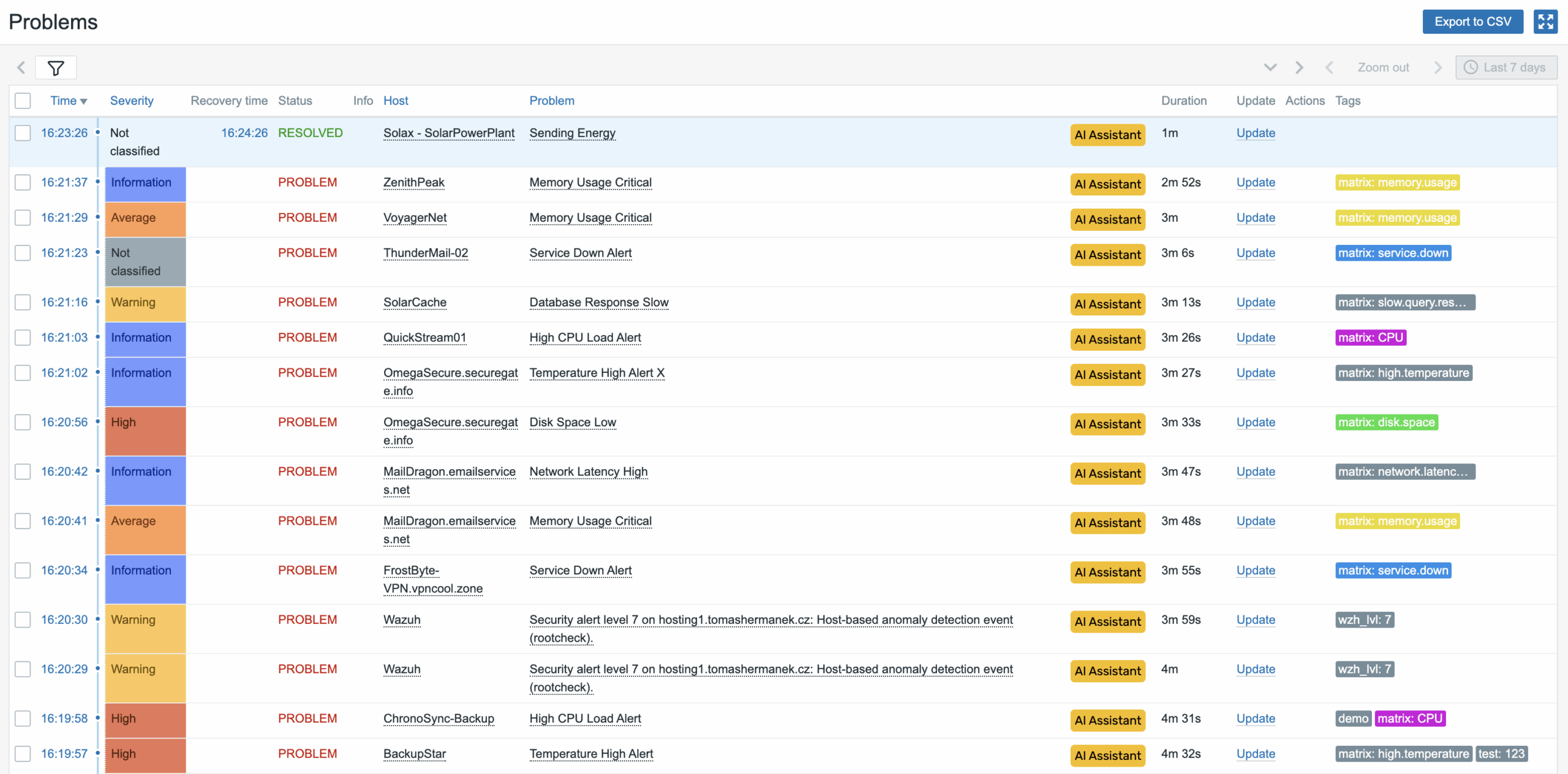 Here is an example where items with a CPU tag are pink, memory is yellow, and service is blue.